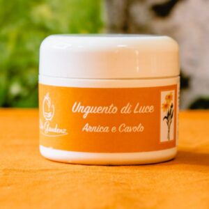 Unguento morbido a base di cera d’api e olio extravergine di oliva, burro di karité, calendula, radice di luce, celidonia, iperico e olio essenziale di lavanda.